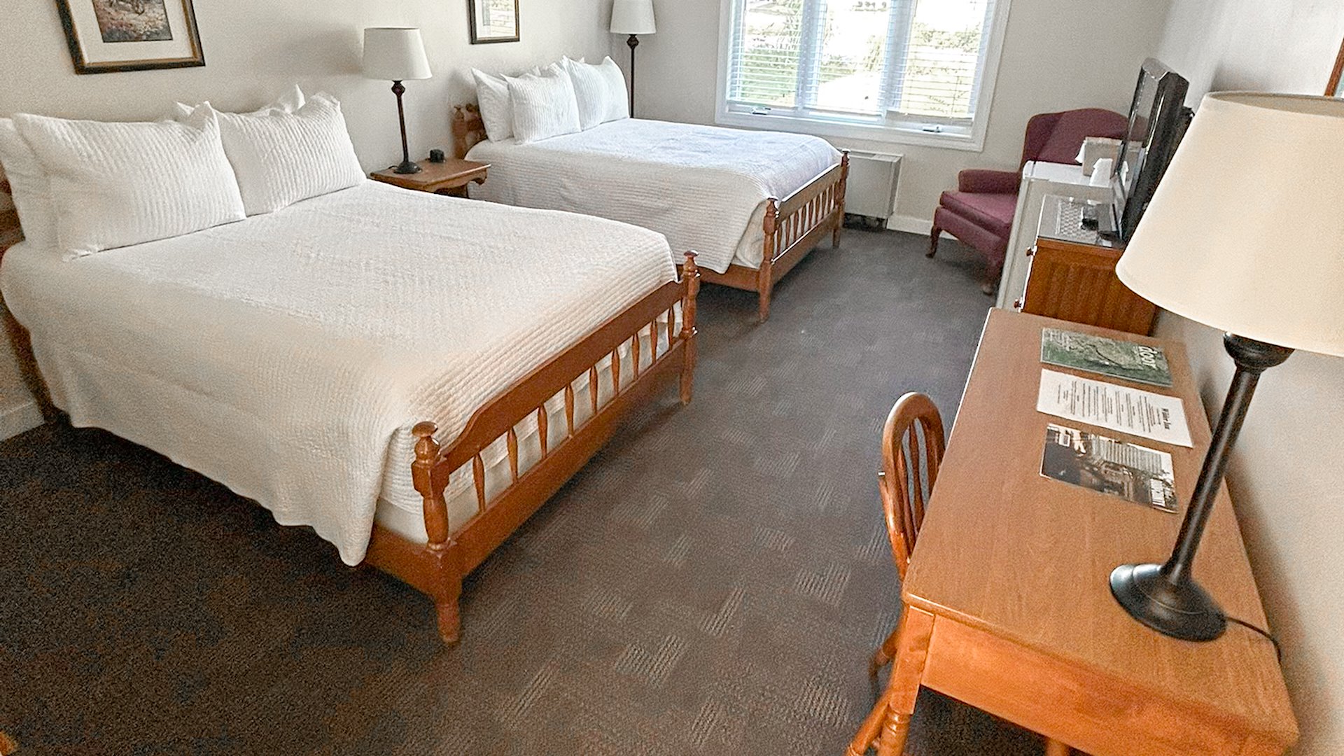 Perfect for a small family or friends, these rooms offer two comfortable full-sized beds set against the tranquil backdrop of the woods.
